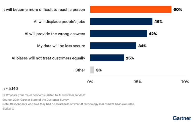 The strongest signal from research is that customers still place high value on human interaction, especially as part of building trust and enhancing the brand experience. Gartner’s findings show direct resistance to AI in customer service among many customers. PwC’s survey referenced above reinforces that human interaction remains central to the brand experience, even as people increasingly rely on AI for specific tasks.