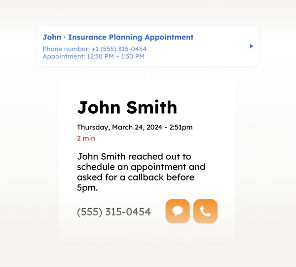 SquawkVoice captures the caller’s details and request, then notifies you so you can follow up.